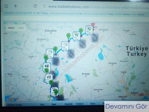 web sayfamızda Tayfun Kardeşimizin inceliği, ülkemizde Meteoroloji Genel Müdürlüğünün hava tahminlerinin yüksek olduğunu hepimiz biliyoruz, Yaşantımızda yer yer hava durumu bilgileri lazım oluyor, ve bu bilgileri Tv-Radyo-İnternetten alıyoruz, eğer Kara Yoluyla, bir şehirden, bir şehire seyahat edeceksek, ama yol boyunca, ama ineceğimiz...