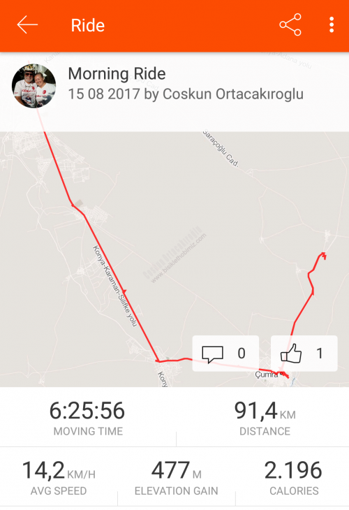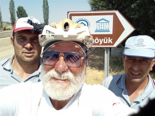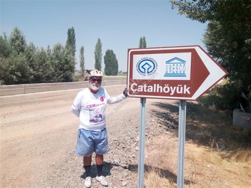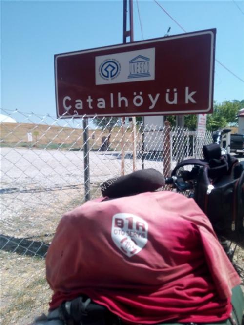 ( 15 Ağustos 2017 turumuzun 35. günü fecabookta paylaştıklarımız.: 35. gün Konya'dan Çumra (çatalhöyük.) 91 km. 6 saat 25 dakika 477 metre yükseklik yaparken. Dolu dolu bir gün daha geçti. Konya'dan İçeri Çumra'ya kadar bölünmüş yol. güvenlik yolu geniş. yolu cetvelle çizsen bu kadar düzgün olmaz. Dün akşam Konya da Bünyamin kardeşimiz Çumra'da mutlaka çatalhöyük e git dedi. çatalhöyükte 9000 bin yıl önce yaşayanlar evlerinde kapı pencere yapmamışlar. Evler bitişik düzende. merdivenle dama çıkanlar. oradaki kapıdan içeri girip evlerinde yaşıyorlarmış. Bunla ilgili yanlış hatırlamıyorsam bir seramik çalışmasını Antalya Müzesinde görmüştüm. Çumra ile ilgili ilk sorduğum kişi İçeri Çumra mı. Kaza Çumra mı dedi. meğerse 1920 li yıllara kadar Çumra'da karayolu kenarın da yaşayan halk. o yıllarda tren istasyonu 12 km. Uzağa yapılınca. Karayolunda o zamanlar araç çok olmaması. Ulaşımın ise trenle sağlanması. Karayolu kenarındaki Çumra halkı tren istasyonu çevresinde evlerini yapmaya başlamış. İlçe olarak burası olunca. Buraya halk KAZA ÇUMRA Karayolunda ki yerede İÇERİ ÇUMRA demişler. Çatalhöyük kaza Çumra'ya 12 km. Uzaklıkta 7 km. Asfalt. 5km. yeni yapılıyor. Stabilize Çatalhöyük e giriş ücretsiz. Örnek evler. müze odası daha sonra iki tepe üstünde. üstü yağmur. Kar. Toz için korunaklı çatının altında kazı yapılan alan. Karnımı doyurdum. Çadır yeri için Cevahir petrol Karaman yolu 40.km saha şefi Murathan Çınar ve çalışanlarına çok teşekkürler. yarın Karaman iyi akşamlar Dostlarım))