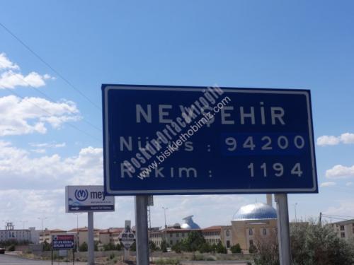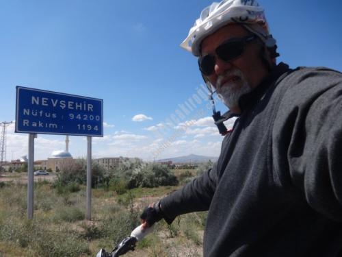 15 Haziran 2014 Pazar sabahı dinlenmiş olarak kalktım, dışarıdaki kahvaltının adı Çay, simit, poğaça, atıştırdım, Hafta sonu caddelerde işe, okula giden yok, otogar önünden, eski Ankara yolundan devam ediyorum, kavşağa gelmeden köprü çalışması, demiryolu, karasu derelerini bir şekilde aştım, artık ana yolda Niğde Adana yönüne pedallıyorum, solumda Erciyes Dağı heybetiyle gözüküyor, saraycık, Çinkur devamındaki kavşaktan sağa Nevşehir yolu 29 km.oldu. yukarı doğru tırmanıyoruz Garipçe köyü 34 km. ileride yokuş bitti, yol biraz düz, sonra aşağıya doğru iniş gidiyorum, bu arada havada etkili bir sıcaklık var, Ürgüp yol ayrımı 58 km.oldu. Avanos'a bir şey kalmadı,ve sonunda Geldim,Akaryakıt istasyonunda su, dondurma molası,nefeslenme, pompacılarla biraz konuştuk, hedef Nevşehir'di yola devam edelim, önümde daha 250 metre çıkışımız var. havanın sıcaklığından asfalt eriyor, yol kenarındaki stabilize yerden devam ediyorum, Nevşehir Hacı Bektaş Veli Üniversitesi devamında şehir merkezi rakımı 1194, nüfusu 94.200 olan kent Nevşehire ulaşmak, önce otel buldum, sonra duş, kendime geldim, sırada karnımızı doyurmak var, günün özeti 84 km yapılan yolun sonunda, Hedefine ulaşmak, Karnını doyurmak, duş almak, yeni bir yerde nefes almak, insan mutlu oluyor, değişik bir duygu içinde oluyorsun. Allah herkese nasip etsin.Başka gezilerimde görüşmek üzere. (2014 yılında yaptığım yol, gittiğim yerlerle ilgili Akıllı Cep Telefonum, GPS cihazım olmadığından kayıtlarımı gidondaki Km.saatimden aldıklarımı yazıyorum,resimlerle de destekleme yapıyorum,)
